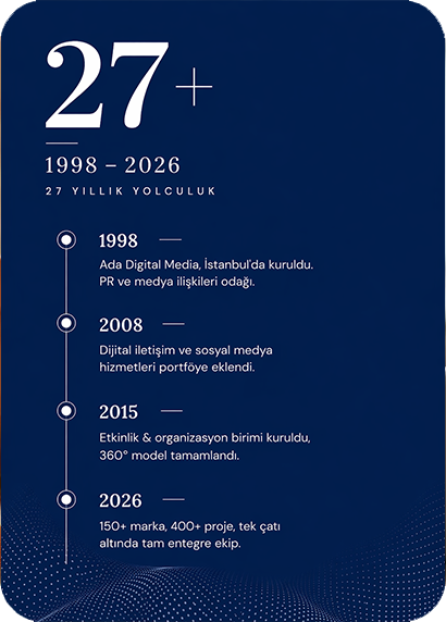 İletişim dünyası yıllar içinde değişti; dijital kanallar büyüdü, medya yapısı dönüştü, markaların görünür olduğu alanlar çoğaldı. Bizim yaklaşımımız ise hep aynı kaldı: her markanın önce ne söylemek istediğini anlamak, ardından o hikâyeyi doğru kanalda, doğru anda ve doğru tonla görünür kılmak.
